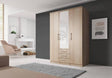 Upgrade your bedroom with this sleek and functional 3-door wardrobe, designed to offer ample storage space while maintaining a modern aesthetic. With three hinged doors, a full-length mirror, drawers, shelves, and hanging rails, this wardrobe provides versatile organization for clothing, accessories, and more.