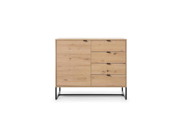 Crafted from 16mm high-quality laminated board with ABS edging, this sideboard ensures durability and resistance to everyday wear and tear. Its sophisticated Oak Artisan finish, paired with black metal legs, adds a touch of elegance while seamlessly integrating into a variety of interior styles.
