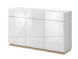 Upgrade your space with the Futura Collection Sideboard, a perfect fusion of modern design and functionality. The high-gloss white fronts, featuring intersecting lines, add a sleek and dynamic aesthetic, while the wood-like dΓ©cor interior enhances warmth and elegance.