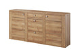 The Larona 25 is a unique and stylish piece of furniture that adds a warm and cosy feeling to your living space. Its two hinged doors open to reveal spacious compartments with two shelves, as well as three drawers in the centre. This stylish piece can be used for anything from storing cutlery or dishware to displaying collectibles or books. Crafted from 16mm laminated board, it is durable, sturdy, and resistant to abrasion.