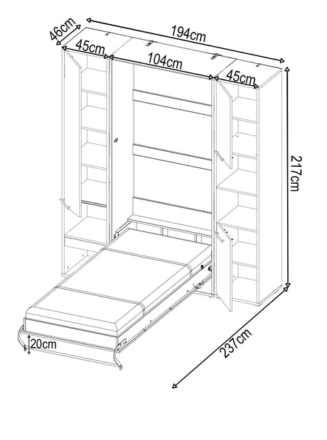 CP-02 Vertical Wall Bed Concept 120cm with Storage Cabinet