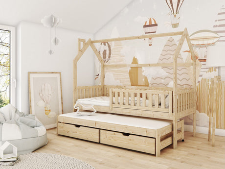 Wooden Single Bed Papi With Trundle
