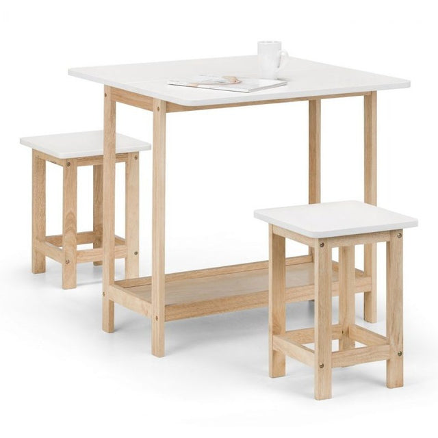 Maximize the functionality of your kitchen or dining area with the Bergen Bar Set, specifically designed for small spaces. This cleverly constructed set features two stools and a self-storing table, ideal for environments where every square inch counts.