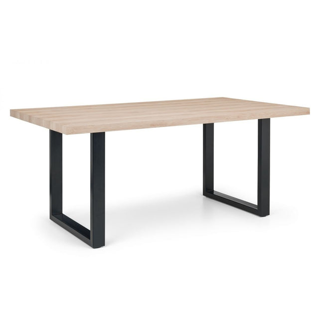 Introduce a centerpiece that blends rustic charm with industrial boldness to your dining space with the Berwick Dining Table. Designed to make a statement, this table features a rustic oak finish top that highlights the natural wood grain, paired with sturdy, industrial-style black legs.