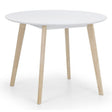 The Casa Round Dining Table brings the iconic retro style of the 1950s to your dining space. Featuring a durable white lacquered top and elegant limed oak effect legs, this table offers a clean, modern aesthetic with a touch of vintage charm. Crafted from solid Malaysian hardwood and MDF, the table is built for lasting durability while maintaining its stylish appearance. Its compact circular design is perfect for smaller dining areas, offering a blend of functionality and retro elegance.