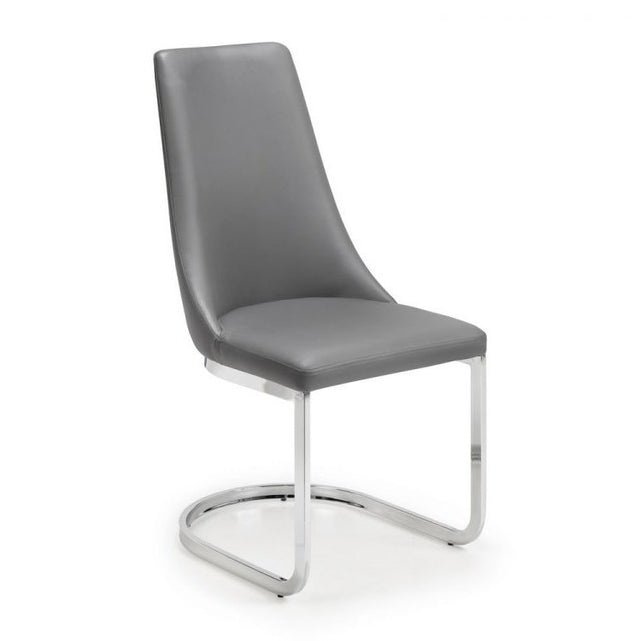 The Como Cantilever Dining Chair, upholstered in luxurious grey faux leather, offers both comfort and style, making it an elegant addition to any dining room. The stunning chrome curved cantilever base adds a touch of class and sophistication, while its sleek design complements a wide range of interior décors. This chair pairs perfectly with the Como Extending Dining Table, creating a modern and cohesive dining set that exudes contemporary elegance.