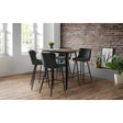 The Grafton Bar Table offers a perfect dining or drinking area for up to four people, crafted from solid Elm wood and satin black powder-coated steel for a sleek industrial look. Paired with four striking Luxe Grey Velvet Bar Stools, featuring luxurious quilted stitching and contemporary black painted legs, this set brings a modern, industrial feel to any room. The combination of rich velvet and sleek steel creates an elegant yet practical space for socializing.