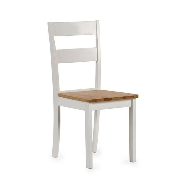 Finished in a crisp white, this chair features a natural light oak effect seat that enhances its classic appeal, making it a versatile addition to any décor. -