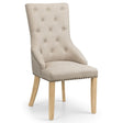Elevate your living or dining space with the Loire Button Back Chair, a stunning piece that combines comfort and sophistication. Upholstered in a luxurious oatmeal linen fabric, this chair is designed to make a statement in any setting.