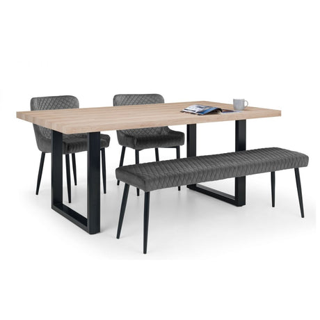 Berwick Dining Table, Luxe Low Grey Bench & 2 Luxe Grey Chairs
