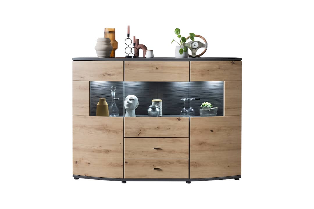 Enhance your living space with the Dera 81 Sideboard, a perfect combination of style, practicality, and durability. Designed to complement modern and contemporary interiors, its Oak Artisan and Graphite Grey finish adds a sophisticated touch to any living room or dining area.