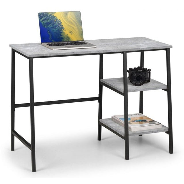 Simplistic in design with a contemporary style, the Staten Desk adds a stunning industrial look to any home office. Constructed from a robust black-coated metal frame and complemented by striking concrete effect tops, this desk creates a stylish and modern workspace.
