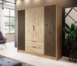 Available in three elegant finishes—Oak Artisan & Lamela Black, Graphite & Lamela Artisan, and Grey & Lamela Artisan—the Nelly Wardrobe can easily complement any interior, creating a clean, understated look that will impress your guests. Crafted from 16mm high-quality laminated board, this wardrobe is not only stylish but also durable and sturdy for long-lasting use.