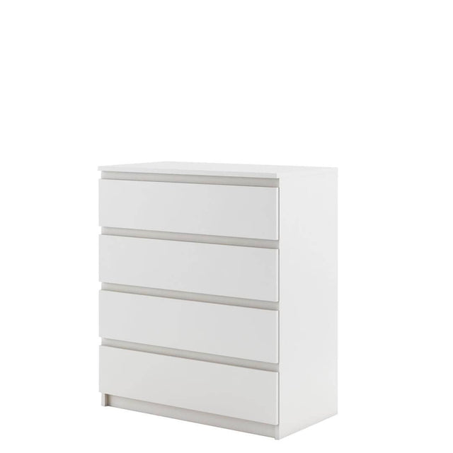 Add a stylish and functional storage unit to your home with this White Matt Four-Drawer Storage Cabinet. Designed to fit seamlessly into any modern or minimalist decor, this piece offers ample storage space for organizing clothes, accessories, or office supplies. Crafted from high-quality laminated board, it ensures durability and long-lasting use, making it a perfect addition to your bedroom, living room, or office.