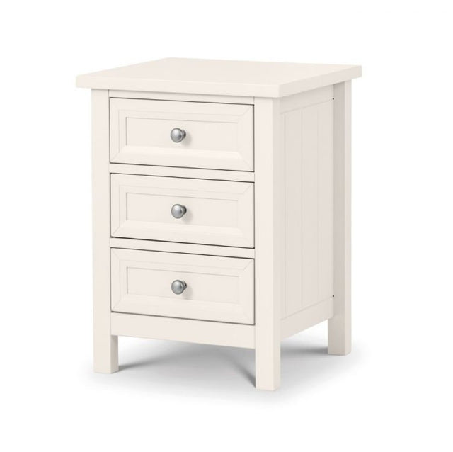 Maine 3 Drawer Bedside - Surf White - White / Pine is backordered and will ship as soon as it is back in stock.