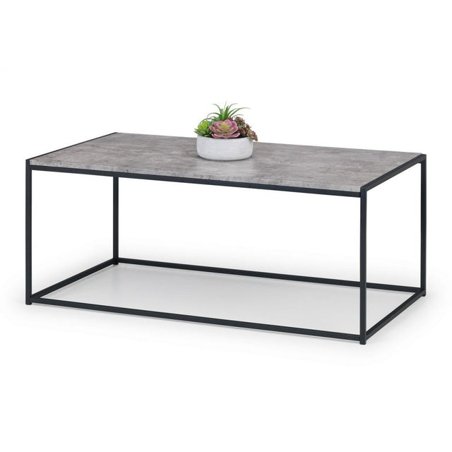 Simplistic in design with a contemporary style, the Staten Coffee Table adds a stunning industrial look to any living or dining area. Constructed from a robust black-coated metal frame and complemented by striking concrete effect tops, this table creates a stylish and modern product.